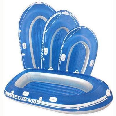 Club 400 Boat, 4-person Pool Boat. 92"x46"x15". 18 gauge vinyl. The Club boats feature two air chambers ith double valves, all-around grab line, grab handle on bow, inflatable floor for comfort and rigidity, weilded oar locks, and U.S. Coast Guard I.D. 440 lb. capacityClub 400 Boat 4-person Boat